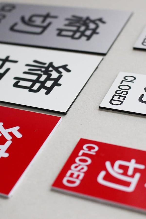 「刻印で高耐久」マットホワイトのプレートに刻印加工、文字は黒です。