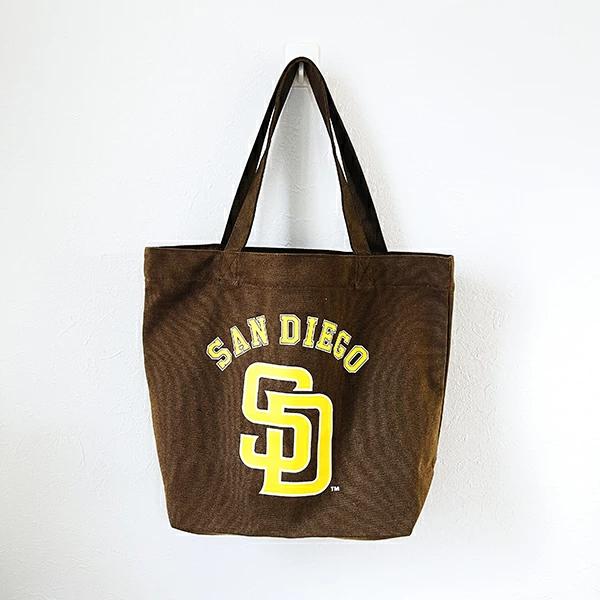 MLBの人気チーム(パドレス)のチームロゴトートバッグです。普段使いにはもちろん、球場に行く際の荷物入れにもぴったり☆シンプルなデザインなのでどんなコーディネートにも合わせやすい♪野球好きの方へのプレゼントにもおすすめです☆彡