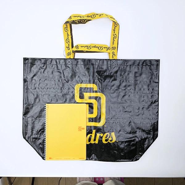 MLBの人気チーム(パドレス)の様々な場面で大活躍間違いなしの大きめショッピングトートバッグです。エコバッグとしてはもちろん、水にぬれても大丈夫な素材なので温泉やプールに行くときにもぴったり☆持ち手にもチームのロゴが入っているのがポイントです♪