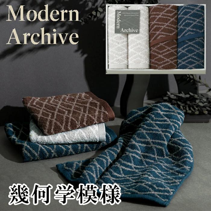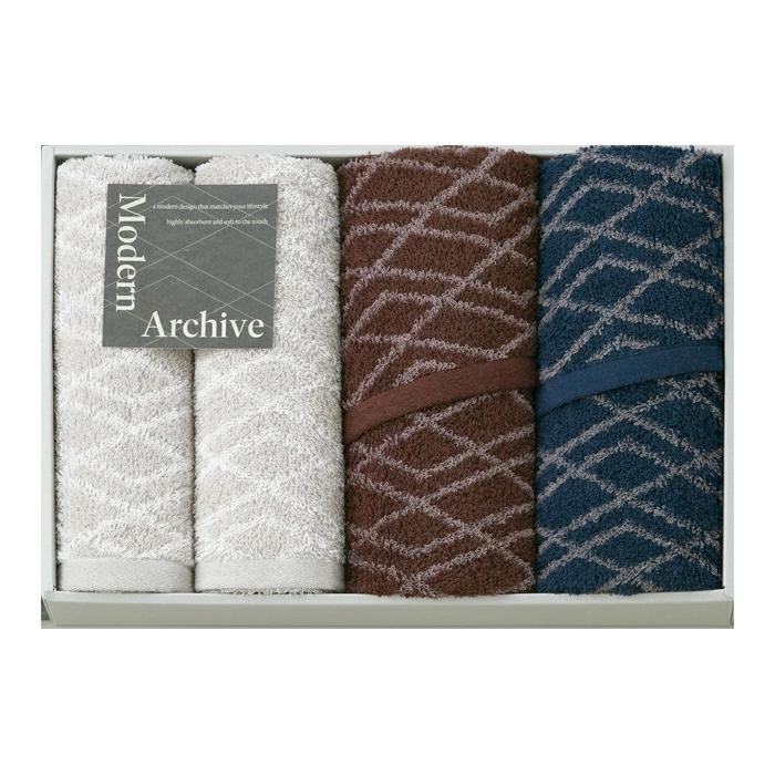 シックなカラーと幾何学模様がモダンな印象を与える、どなたにも贈りやすいタオルギフトです。