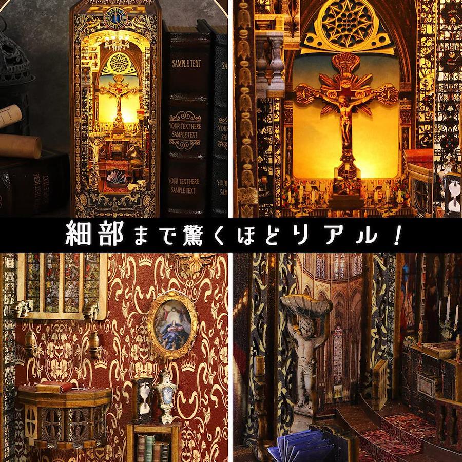 本商品はミニチュアのドールハウスの手作りキットになります。まるで童話の世界が現実に飛び出てきたような、本型のミニチュアです。新書より一回り大きい程度の、手のひらサイズ。 【完成サイズ】 幅9.2×高さ22.5×奥行16.1cm 【サイズ分類】 小型 【制作時間】 13~25時間 【制作難易度】 ★★★☆☆(普通) 【セット内容】 素材一式&LEDライト 【保証】:パーツ保証付。お届け後に万が一パーツが足りなかった場合、迅速に替えパーツをお送りさせて頂きます。 初心者の方でも手軽に取り組めます♪新たな趣味としていかがですか?日常で見慣れたビーズや、金具などがみるみるうちに小さな家具に生まれ変わる様子は感激です。 箱・説明書は中国語で書かれています。初心者の方でも作って頂けるよう、説明書はフルカラーで全行程が丁寧に解説されています。輸送の都合上、外箱は多少の凹みがある可能性がございます。予めご了承くださいませ(ダメージが大きい場合には新しい箱に取り換えております) 巣ごもり中のおうち時間の新しい趣味としていかがでしょうか?熱中していると時間が経つのがあっという間です。夏休みの自由研究、バレンタイン、誕生日、クリスマス、ハロウィン、父の日、母の日などのプレゼントにもおすすめ。
