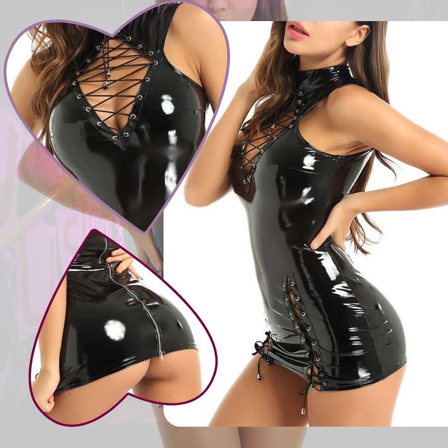 原産国 中国★上質なPUレザーを使用した 光沢 エナメル ストレッチ ワンピースです。背中のファスナーで開閉が可能ですので、少し開けてよりセクシーに見せたり、盛り上がったらそのまま脱ぎ捨てて、、★高級感を演出するホルターネックにキュートでカジュアルな印象を与えるノースリーブタイプ、光沢つやつやの エナメル タイト ミニ ワンピース、プレゼントにも最適です。★[使用例]:パーティー、ミュージックフェスティバル(クラブ、レイブ、ダンス、バー)、コスプレ、ショー、キャバクラ デート(ホテル、自宅)、ハロウィンコスチューム、ナイトクラブ、カーニバル、バー、マスカレードコスチューム、ダンス衣装、ライブ衣装、コンサート衣装、パーティー衣装 等、その他様々ななイベントに最適です。★【商品内容】 ◆ワンピース+パンティー 2点セット ◆素材:ポリエステル、PU★【サイズ】◆S:バスト78~84cm ウエスト62~68cm ヒップ84~92cm ◆M:バスト82~88cm ウエスト66~72cm ヒップ86~96cm ◆L:バスト86~92cm ウエスト70~76cm ヒップ90~100cm ◆XL:バスト90~96cm ウエスト74~80cm ヒップ94~104cm ◆XXL:バスト92~106cm ウエスト78~84cm ヒップ98~108cm ※こちらの商品は海外輸入品のため、通常より小さめの作りになっておりますので、1サイズ大きいサイズをお勧めします。(サイズが合わない場合などがございましたら交換いたしますのでご連絡ください。(#lf)(#lf)(#lf)商品購入前に、ストア紹介ページをご確認ください。