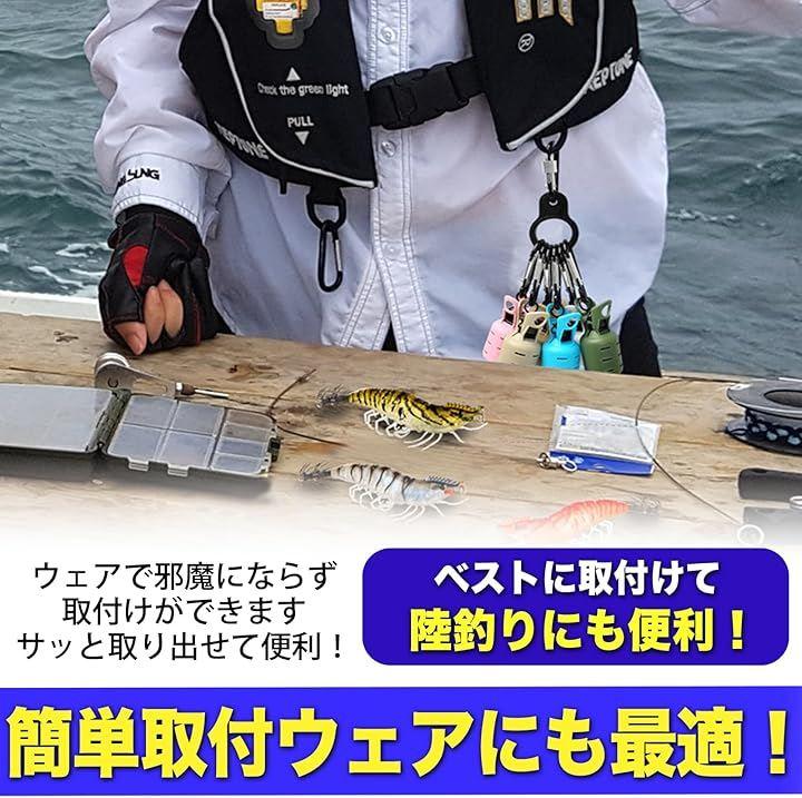 「効率的な収納」このカラビナ付きエギホルダーは、最大6本のエギ(ルアー)を一度に収納できる設計で、釣り場でのエギの取り出しやすさを大幅に向上させます。