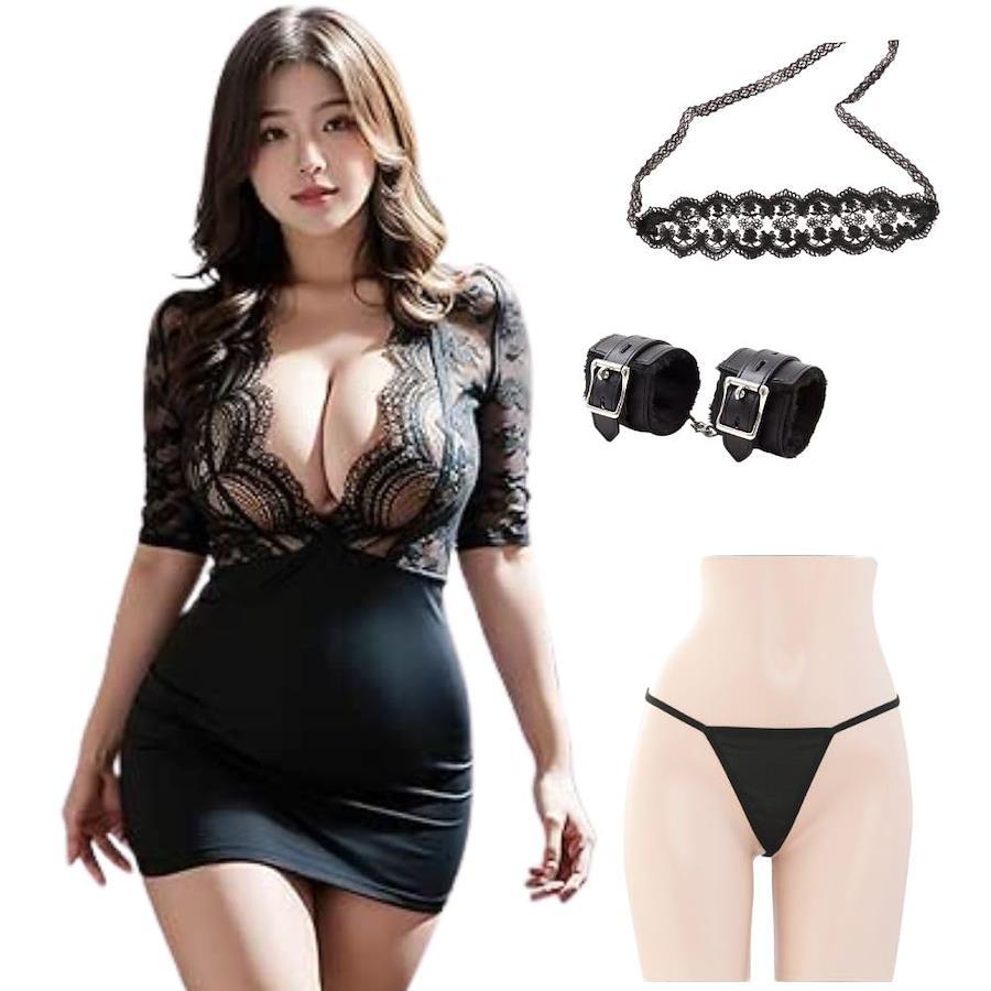 原産国 中国??【SM初心者さんにもオススメ♪】ぽっちゃりさんや豊満ボディの方にも嬉しいビッグサイズの拘束具付きセクシーレースキャバドレスコスチュームセットです。??【デザイン】レースの透け感とディープVネックが胸元を強調し、挑発的でセクシーなデザイン。レースのアイマスクもついており統一感がでてより一層ムードを引き立ててくれます。無地の黒生地が体型を美しく見せ、全体的に上品な印象を与えます。花柄レースと黒生地のコントラストが洗練された大人の女性らしさを引き立てます。伸縮性のある生地と大きめのサイズ感で、体型を気にせず快適に着用可能です。??【刺激的で情熱的な夜に】ボディコンのように体にフィットするので女性らしい曲線を美しく引き立て、魅力的なシルエットを作り出しくれます。後ろから見ても前から見ても魅力的なので興奮する事間違いなし!付属のアイマスクで目を隠し、手錠で手を拘束すれば新しいSMの世界で熱い夜をお楽しみ頂けます。手錠はふわふわした素材を使用しいるので長時間着用していても痛くなりにくい設計になっているので安心してご利用頂けます。興奮してしまってもTバックなのでスムーズに挿入が可能です。??【商品仕様】セット内容:ボディコン キャバドレス、Tバック、レースアイマスク、ふわふわ手錠 サイズフリーサイズ:(XL~3XL相当)首周り23cm、着丈70cm、肩幅38-47cm、バスト82-140cm、袖丈36cm、袖口25-30cm、ウエスト70-114cm、ヒップ76-130cm、推薦体重60-80kg ※各採寸箇所実寸(平置き)より±3cm程度は誤差ある場合がございます。 ※海外輸入商品のため縫製の甘さやほつれがある場合がございます。 ※お客様のPCやモニターの環境及び撮影の関係で、商品は多少のカラーの相違がある場合がございますが、ご了承下さい。??様々なイベントや機会に選ばれております。 【使用例】:パーティー、宴会、ミュージックフェスティバル(クラブ、ダンス、バー)、コスプレ、ショー、キャバクラ デート(ホテル、自宅)、ハロウィン、クリスマス、バレンタイン、誕生日、ナイトクラブ、カーニバル、バー、等(#lf)(#lf)(#lf)商品購入前に、ストア紹介ページをご確認ください。