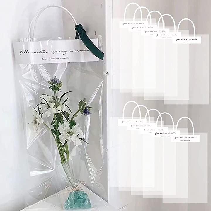 ・片手で持ち運びができる、透明タイプの手提げフラワーバッグ、OPP袋です。
