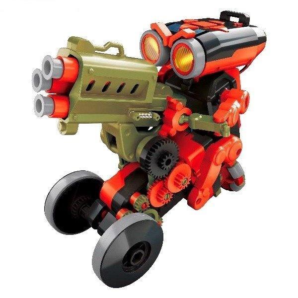 イーケイジャパン コードランナー ロボット工作キット MR-9111 パソコンを使わないプログラミングロボ・プログラムは64ステップまで入力可・プログラミングの基礎が学べる・3つのロボットに組み替えできるコードランナーはパソコンを使わないプログラミングロボットキットです。頭部の5つのボタンで前進やバック、右左折などの命令を入力。また、3種類のロボットに組み替えて動かすことができます。(1)お絵かきロボペンを持たせて文字や図形などを描くことができます。(2)ショットロボスポンジ弾を発射!3発まで発射可能です。(3)おそうじロボ2本のほうきとちり取りで、テーブルの上のごみをお掃除します。難易度:4工作時間:2~3時間程度対象年齢:10歳以上部品点数 181点ショットロボ:約H150×W100×D165お絵かきロボ:約H155×W120×D110おそうじロボ:約H140×W128×D125ショットロボ:約270g/お絵かきロボ:約220g/おそうじロボ:約260g