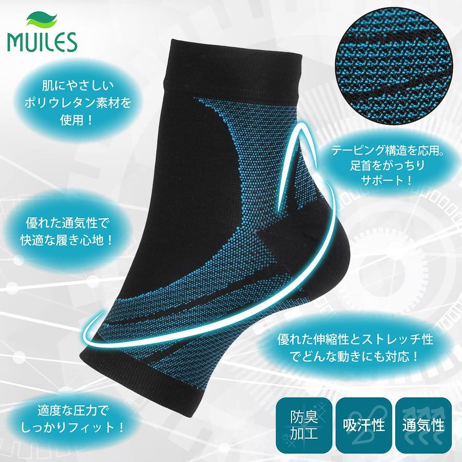 【2枚入り】サイズはMとLの2種類で男女兼用です。【Mサイズ】足首の周囲18cm~23cm、足のサイズの目安20cm~24cm。【Lサイズ】足首の周囲23cm~31cm、足のサイズの目安24cm~29cm。各サイズの境目に適合する場合は大きい方のサイズをお選びください。また甲高の方、幅広の方はLサイズをお選びください。※サイズが合わなかった場合は無料で交換いたします。 足に直接圧を加えることにより、快適な歩行をサポートします。 素材は伸縮性に優れ肌に優しいポリウレタンを使用しています。伸縮性を活かした設計によりスポーツ、立ち仕事など、長時間の使用にも適しています。テーピングと違い汗で緩んだりずれたりすることがありません。通気性と吸汗性にも優れています。 プロスポーツ選手も使用しているサポーターです。スポーツだけでなく、日常生活でもぜひご使用ください。サポーターの上から靴下の着用が可能です。 サイズが合わなかった場合は無料で交換いたします。