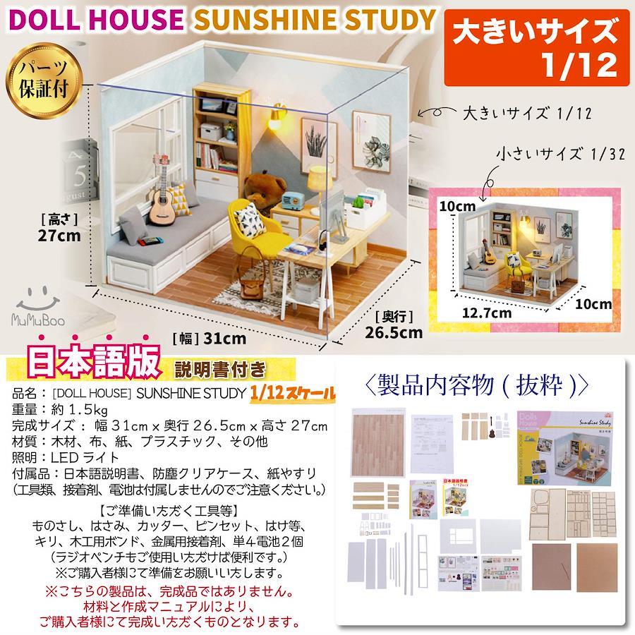 【大きい1/12サイズ】大きい1/12サイズでお好みのアレンジが可能です。日本語説明書付きなので初めてドールハウスを作成する方にも戸惑うことなく制作に集中いただけます! 細部にまでこだわった魅力的なインテリアで、一度住んでみたくなるような可愛くておしゃれなお部屋です。ライトは実際に点灯し本製品の魅力をさらに引き立てます。作る楽しさと完成後のインテリアの、2つの魅力を兼ね備えた製品です。 【日本語説明書付きで短時間で作成可能】全行程フルカラー写真付きで、日本語による説明がされていますので、説明書に従って進めていけば初心者の方でも悩むことなく、安心して完成させることができます。英語の説明がよく分からず、悩む心配はありませんのでご安心下さいませ。 ※ダストカバーは、片側はクラフト紙で保護され、もう片面は透明テープで保護されています。 透明テープを剥がしていただけば、クリアな状態となります。 【ご準備いただく物】作成を行うため、次のものをご準備いただけますようお願いいたします。 「ピンセット、ものさし、はさみ、カッター、はけ又はへら、キリ、木工用ボンド、金属用接着剤、単4電池2個。またラジオペンチもご使用いただけば便利です。」 【30日の返品交換保証】商品の品質管理は徹底しておりますが、もし万が一商品に不備がございましたら、ご購入後30日以内であれば、返品対応を承っておりますのでお気軽にご連絡下さいませ。
