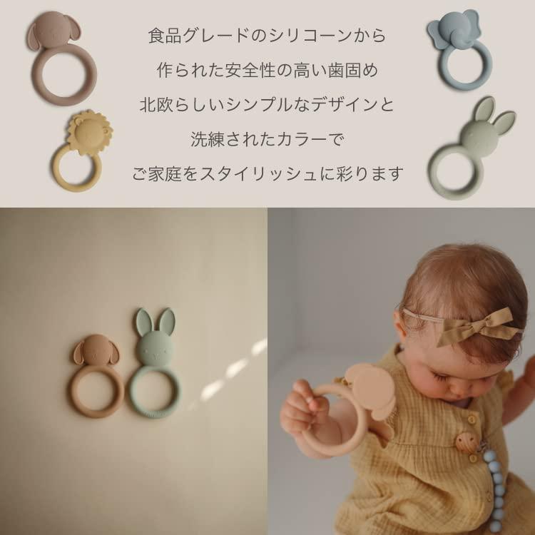・2018年にヒューストンで設立されたベビーブランド『mushie(ムシエ)』・スウェーデンでデザインされたmushieのベビーグッズたちは、北欧らしいシンプルなデザインと落ち着いたくすみカラーが人気です。・食品グレードのシリコンから作られた動物の形をしたかわいい歯がため。・BPA、PVC、フタル酸エステルは一切含まれていない安心安全なシリコンを使っています。・厚生労働省が定める食品衛生法に基づく検査を受け、合格しているので赤ちゃんにも安心してかみかみ遊んでいただけます。・赤ちゃんの小さな指でもつかみやすい大きさに設計されています。・スウェーデンのデザイナーがデザインした北欧らしいシンプルな形とニュアンスカラーが魅力的。・歯がための裏面はライオンさんの足跡やウサギさんの好物のニンジンが散りばめられた遊び心のあるデザイン。・シンプルでおしゃれなパッケージ入りなので、ご出産のお祝いやお誕生日のプレゼントにもおすすめです。 100%食品グレードシリコン 日本の食品検査をクリア 小さな指でも掴みやすい オシャレなニュアンスカラー