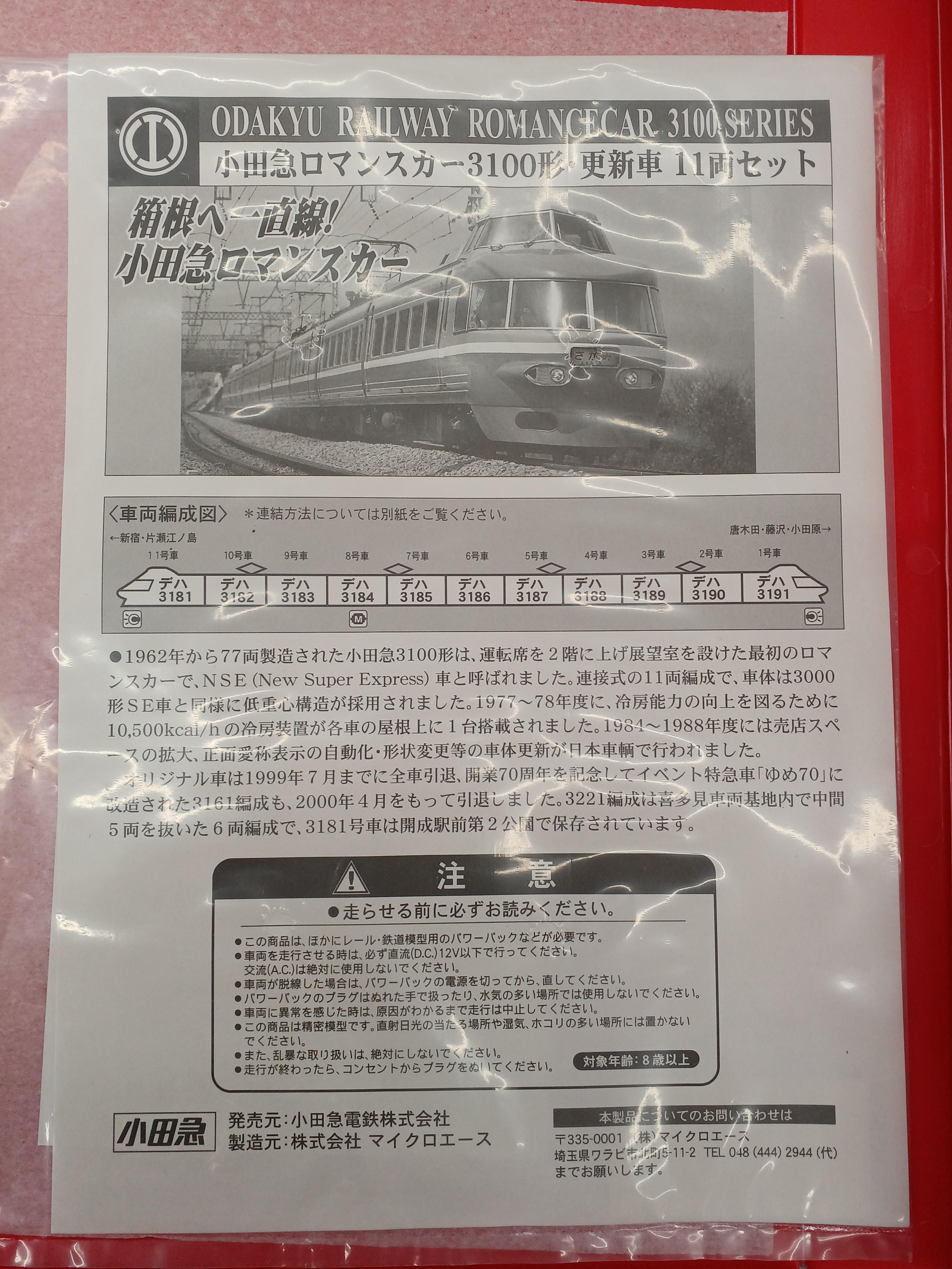 Nゲージ 小田急ロマンスカー3100形(NSE)更新車 MICRO ACE 電車 MICRO ACE小田急ロマンスカー3100形(NSE)更新車Nゲージ■モーター■付属品シール未使用