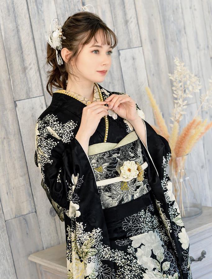NABESHIMAオリジナル振袖、「furisode Coffret」CF-506。受注生産になりますので、生産に約3か月、仕立てに2か月、合計最長で5か月程度を見込みます。なお、仕立てに関しましては、特にご指定のない場合、裄70㎝でお仕立てさせていただきます。胴裏はポリエステルです。1点あたりの重量:約1KG ※商品は振袖のみです※お返事は土日祝日除く平日の営業日5日間程度頂戴します