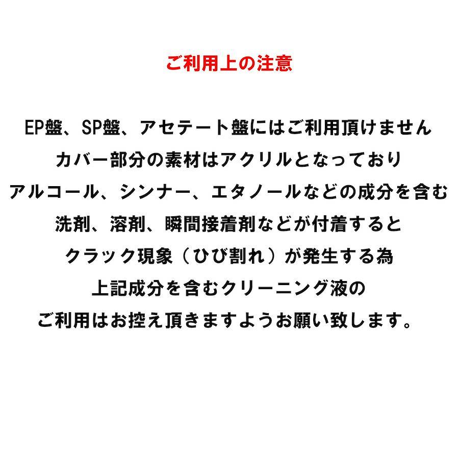 :レコードの汚れはノイズの原因となり、ノイズの無いクリーンな音質で聞き続けるには、定期的なクリーニングが必要となります。 本製品は両面からプロテクターで挟み、ねじで締めることによりレーベル部への水の侵入を防ぎます。 プロテクター円周部にゴムパッキン、ねじ穴の周辺部分にゴムシートを装着しているので浸水を防ぎつつプロテクターをしっかり固定できます。 本体も175gと軽く、洗浄しやすい設計です。 ※レコード盤専用ですのでポリ塩化ビニール製以外のディスク(CDなどの光学式ディスクやSP盤、アセテート盤など)には使用できませんのでご注意ください。