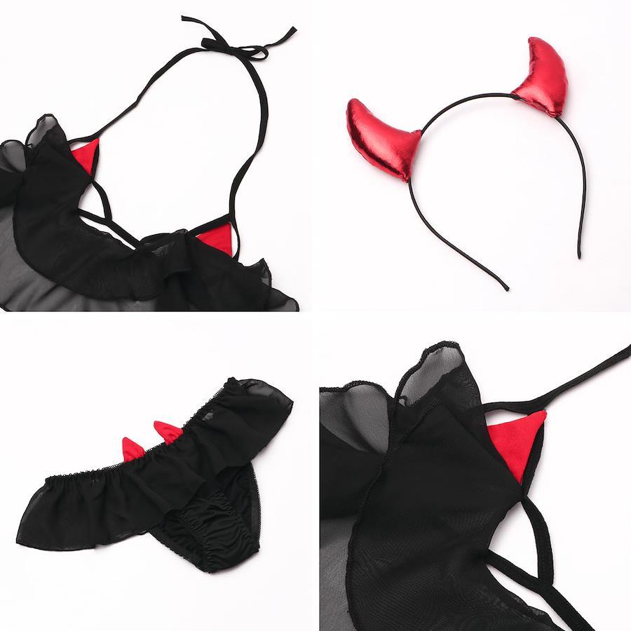 [Najiny] Sexy and Cute Little Devil Succubus Costume, Lingerie Cosplay Set with Enamel-Like Devil Design, Extreme for Women