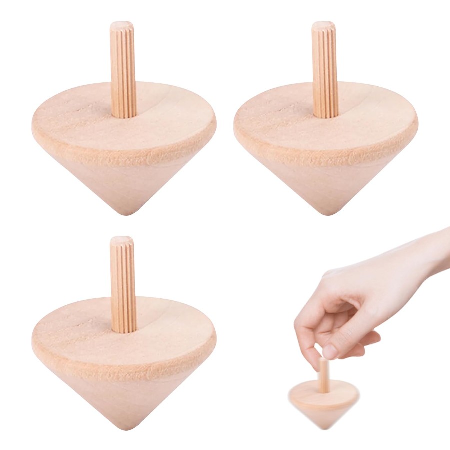 nalaina 木製 手回しこま【3個セット】手回しコマ 木製おもちゃ 無着色 着色可能 DIY 室内遊び 指先遊び 家で遊ぶ 趣味を作る 工作 おうち遊び 子供用おもちゃ 面白い