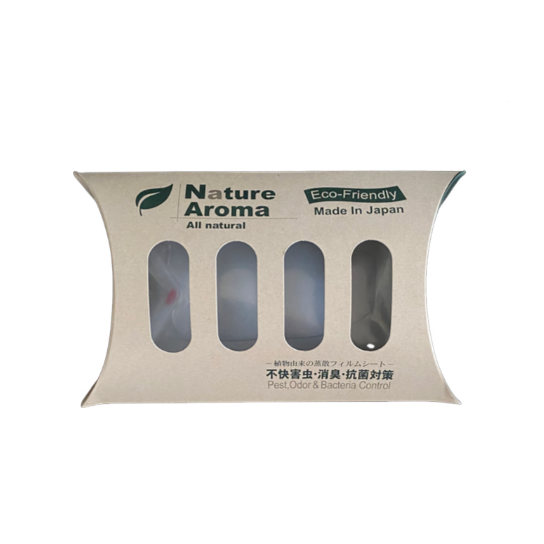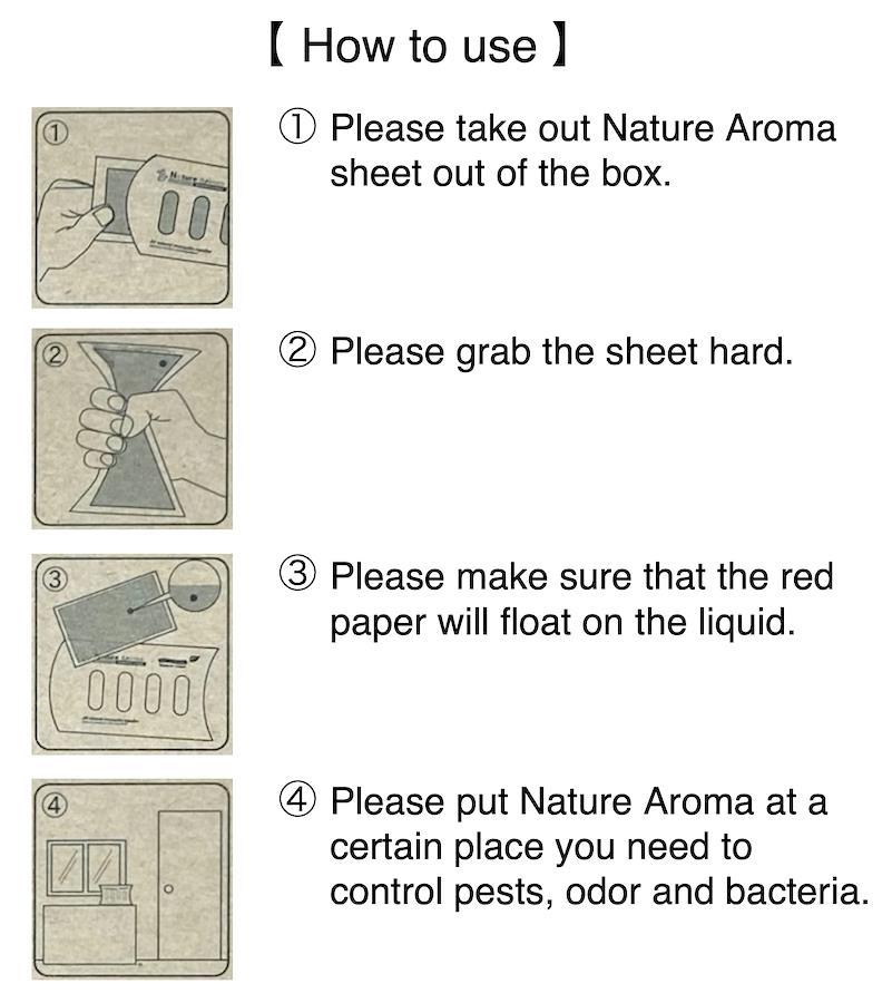 【使用方法】に書かれているように、お客様が使用する時に液体が入ってい一番内側のシート(袋)が破れることで、中の液体が蒸散(気化)するような状態になり効果を発揮するようになります。