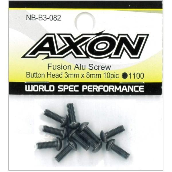 AXON Fusion Alu Screw (Button Head 3mm x 8mm 10pic) NB-B3-082 新発想で最適なシャーシロールを生み出すフュージョンアルミスクリュー。アクソンフュージョンアルミスクリューは特殊なコーティングを施し、ビスを適度に潤滑させ理想的な締め付けトルクがかかるよう作り出された、これまでにはない新発想のアルミビスです。しかもとても軽量なアルミ素材でありながらこれまでのアルミビスに比べ剛性を持たせるべく最適な熱処理を施したため、しなやかなシャーシロールを得つつスタビリティの高いマシンに仕上がります。