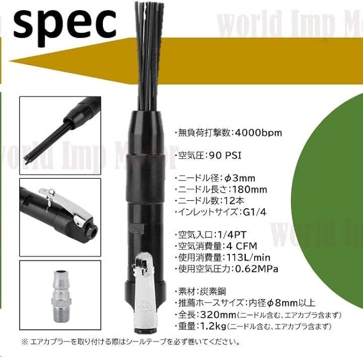 塗装 の剥離 や サビ の除去作業などに使える、ニードル スケーラー (除錆針 12本)です。