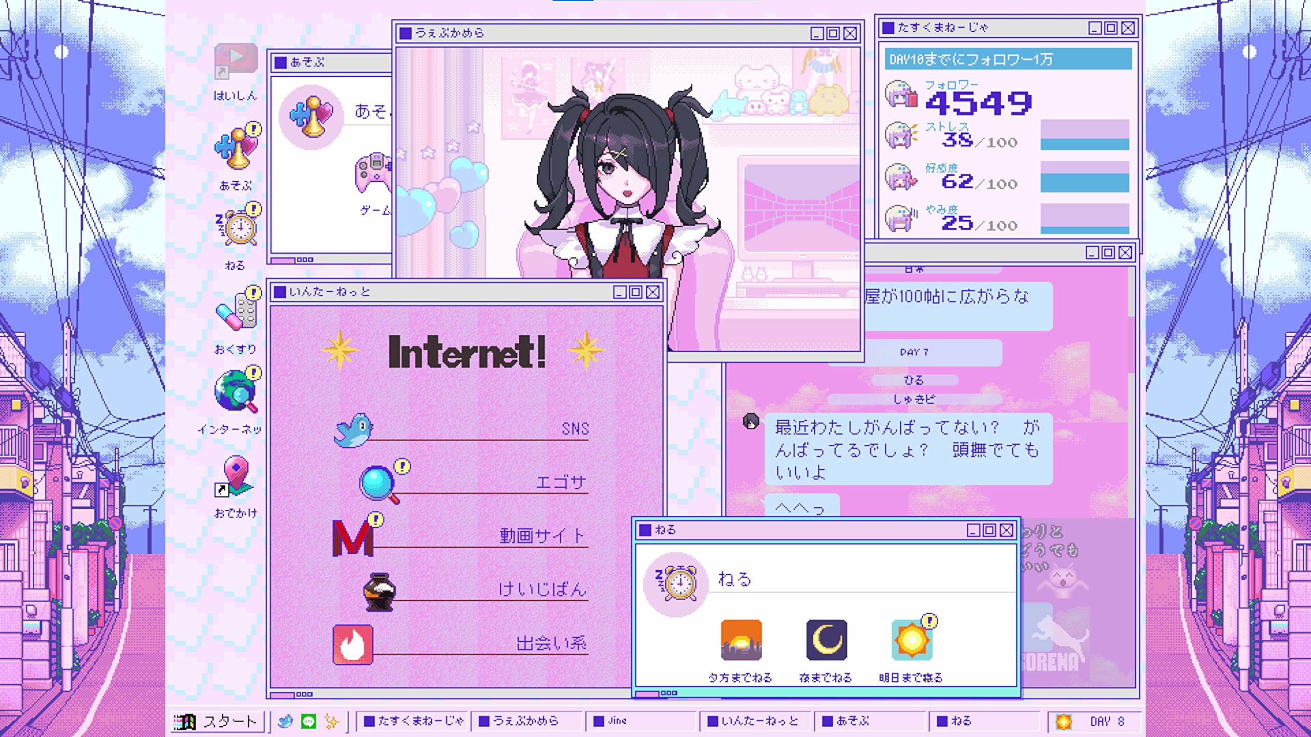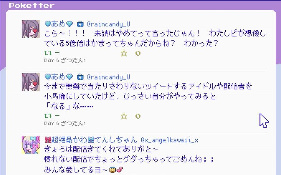 ・あなたのとった行動でエンディングが分岐するよマルチエンディングで、いろいろな理由で病んじゃったり、ピに危害を加えたり、あっちの世界に飛んで行っちゃったりするよ。現代インターネットの闇にとらわれた女の子にハッピーなエンディングが存在するのか、あなたの目で確かめてね。
