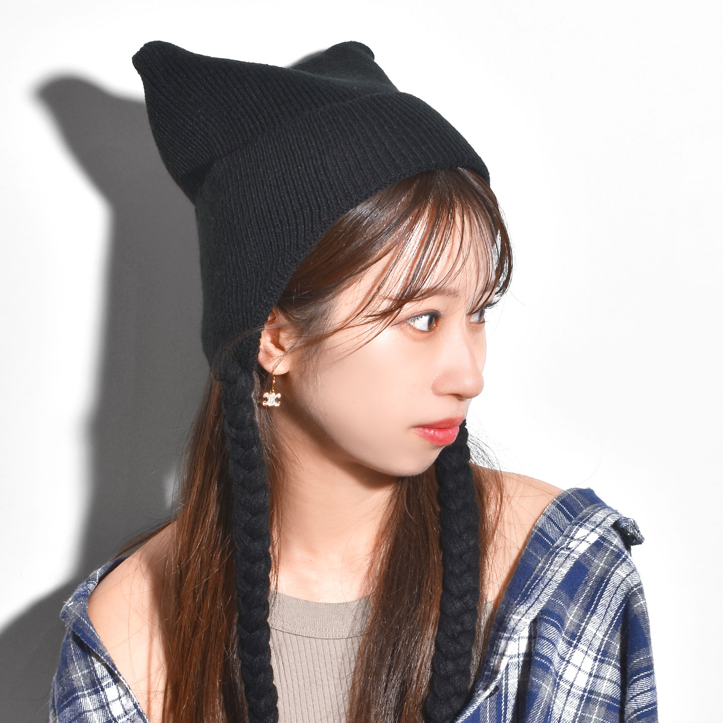 着用時、猫耳のように見えるNEWERAのスクエアニット帽。カジュアルやストリート、古着系の着こなしにはもちろん色んな着こなしにマッチします。