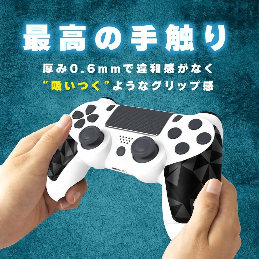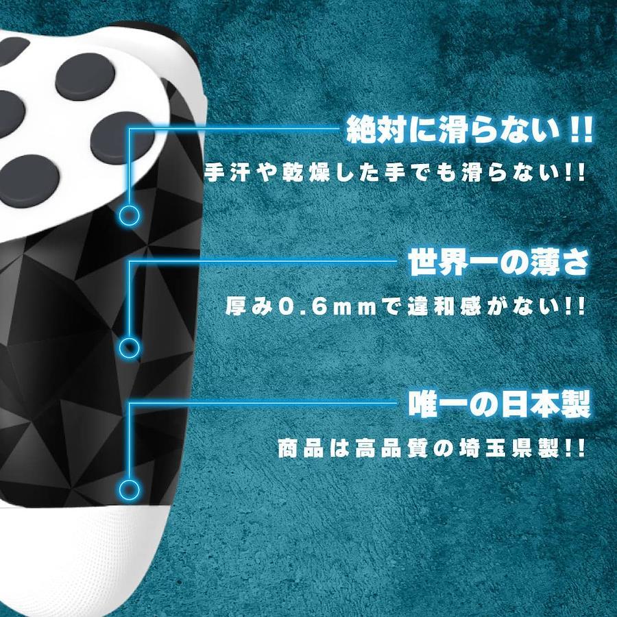 ?世界で活躍をしているプロテニスプレイヤーやメジャーリーガーが使用している特殊素材、同じメーカーにて製造。例え水で濡らした手でも滑る事がありません。?グリップ部分:埼玉県製造 粘着部:東京都製造 商品箱:山形県製 全てがクオリティの高い日本で製造を行っております。?滑る事がなく、安定したポジションにてコントローラーをホールドする事ができ、エイムが驚異的に安定します。??グリップをコントローラーへ貼り付ける際には必ずコントローラーを無水エタノールあるいは、水拭きで清掃を行ってから貼り付けをお願いします。塗装済みコントローラーに貼り付ける場合は塗装が剥がれる恐れがあります。?乾燥しカサカサした手も、手汗が出た手もどちらもしっかりとホールドし滑る事はありません。
