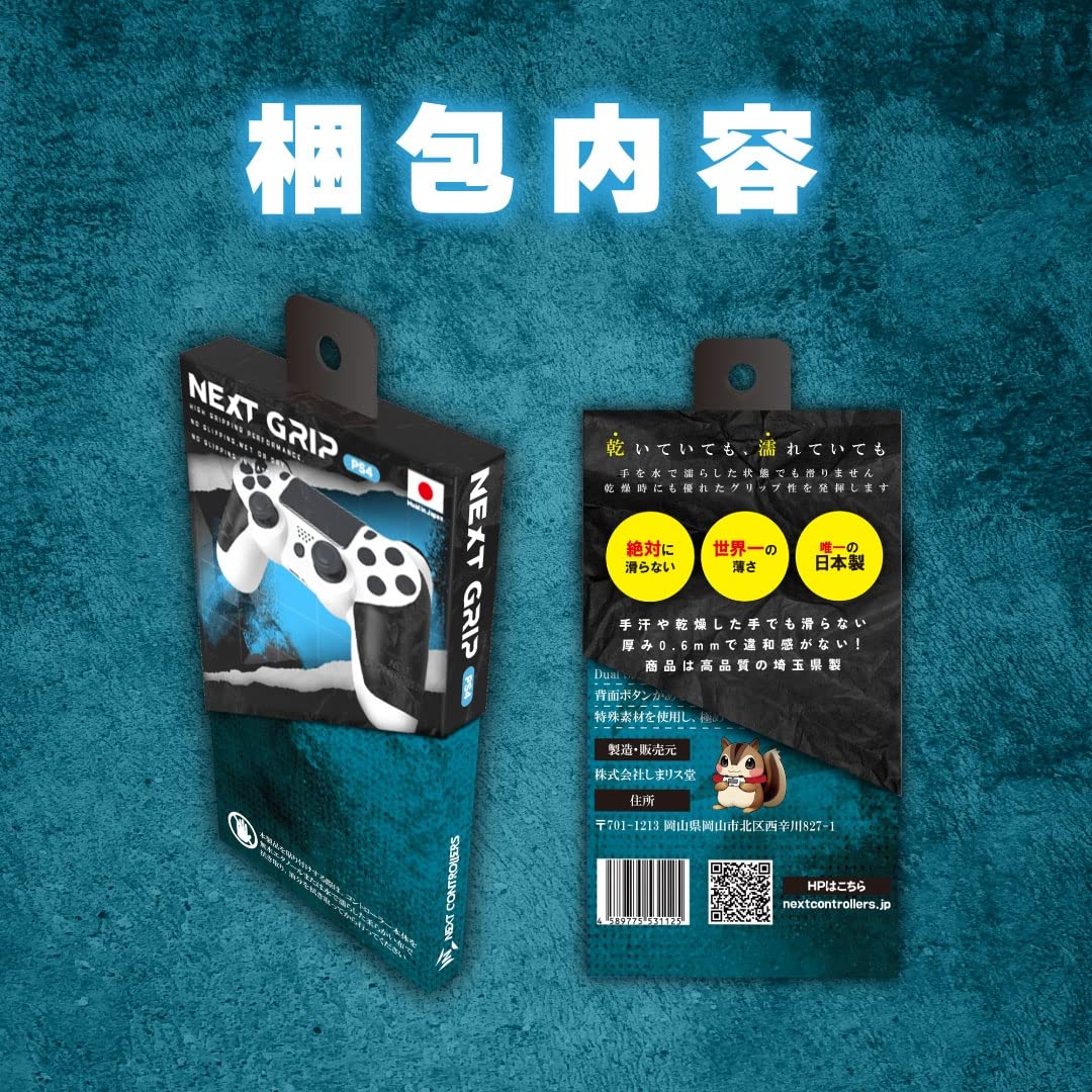 NEXTグリップは特殊素材を使用しており例え水に手を濡らして触っても、滑る事がありません。グリップ素材は埼玉県で製造され粘着部は寺岡製作所製、商品箱は山形県製となっており、全ての物がクオリティの高い国産となっております。 特に手汗が出がちな緊張感があるシーンや、どのようなシーンでもがっちりとコントローラーをホールドする事ができるため、手のポジションがずれる事が無くなり、エイムが驚異的に安定します。 NEXTグリップはゲームの操作性を完璧にサポートする究極のコントローラーグリップになります。