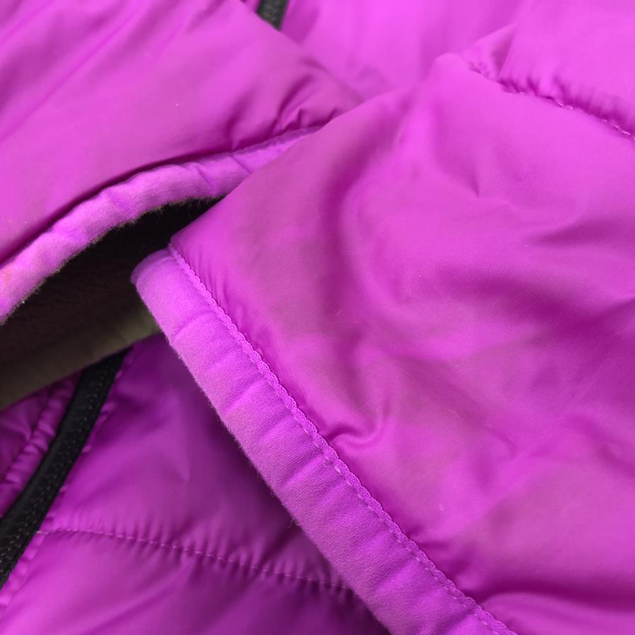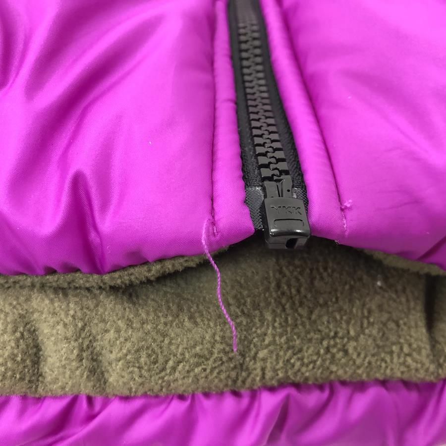 袖口に汚れと裾ファスナー付近に糸ほつれが見られます。