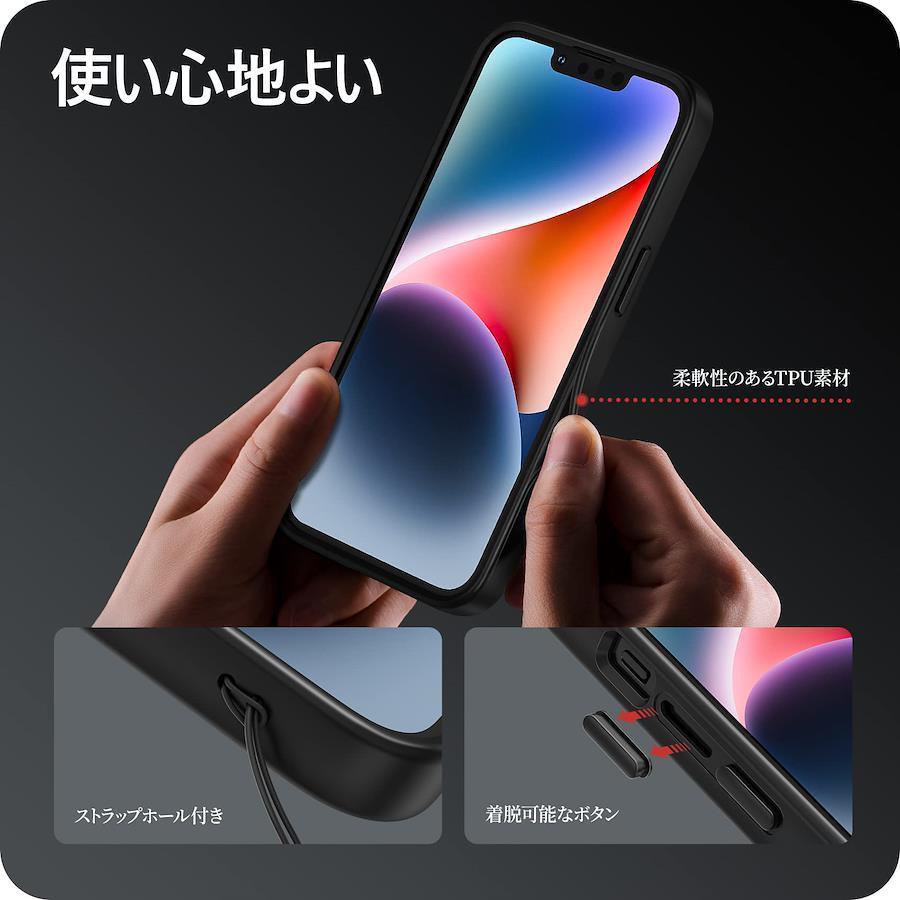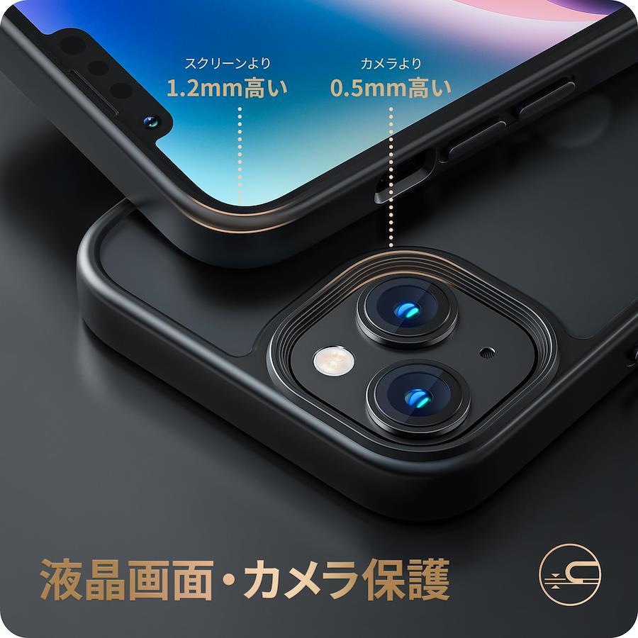 【対応機種】アイフォン14 / 13 用(6.1インチ・二眼レフ)【米国MIL規格取得・超高耐衝撃性】世界で有名な米国防総省が規定する米軍採用品規格「MIL-STD-810H」に準拠。(認証番号:GZMR220802602301)。1.22mの高さからコンクリートの地面に厚さ5mmの合板を敷いた上に合計26回それぞれ違う角度から落下させて、本体は完全に無事です。高い耐衝撃性を誇り、アイホンを全方位からしっかりと守ります。【半透明・マットな仕上げ】背面のポリカーボネートは、耐久性や耐摩耗性に優れ、マットな質感でサラサラして触り心地がすごく良いです。表面には指紋防止ナノオコーティングを施しており、指紋つく心配はありま