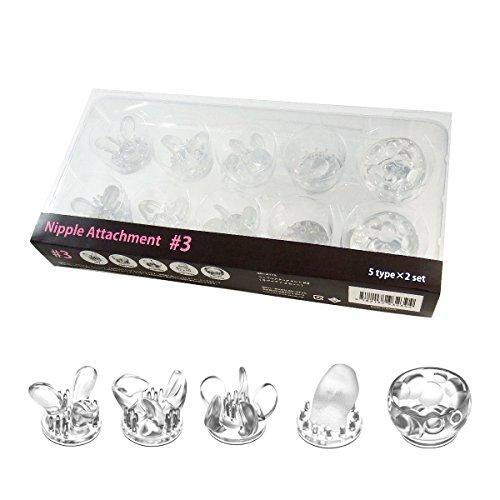 拡がるバリエーション。あの「ニップルドーム」に待望の追加アタッチメント「ニップルアタッチメント」が新登場。オナニーの種類は「床オナ」や「アナニー」のような部位や方法に応じて様々な呼び方が存在しますが、その中でも乳首でオナニーをする「チクニー」は男女関係なく気軽に楽しめる、最早一般的なオナニーと言っても過言ではありません。そんなチクニーをより豊かにハイレベルに。発売前から話題沸騰、多くのチクニストから絶大な支持を得ている「ニップルドーム」です。「ニップルドーム」は絶妙な強弱調整、多彩な回転バリエーションの開発グッズです。ハンドル式で吸引しながらアタッチメントの高さを調節可能なので性別を問わずに幅広くお楽しみ頂けます。【各アタッチメントの紹介】・Lily(リリー)リリーの花をイメージした、外側にひらく花びら型のアタッチメント。花の内側に入り込んだ部分を優しく…・Triple Claw(トリプルクロー)内側に向かった3つのツメ型が特徴的なアタッチメント。引っかくような感触は、回転の速度で自由に調節可能。・Propeller(プロペラ)5枚のプロペラが次々と動作するアタッチメント。中央がやや広く開いており、先端を小さなブラシで刺激します。・Single Tongue(シングルタン)小さな舌が回転しながら舐め尽くす。ザラザラの表面+考え抜かれた絶妙な曲線が、乳首を余すところなく。・Ball Cup(ボールカップ)カップの中に大小様々なボールが不規則に配置されたアタッチメント。シリコンのボールが乳首を包み込み、回転することであらゆる角度から刺激を与えます。 5Type×2Set 内容量:80g 商品サイズ (幅×奥行×高さ) :Lily:2.4×3.2×3.2cm、Triple Crown:2.4×3.2×3.2cm、Propeller:2.3×3.5×3.5cm、Single Tougues:2×3×3.5cm、Ball Cup:2.3×3.5×3.5cm