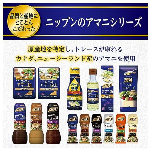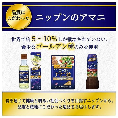 ・今、話題の「オメガ3脂肪酸」の一種であるα-リノレン酸を豊富に含んだアマニ油です。・ニップンのアマニ油は、食用専用に開発された黄金色で美しい「ゴールデン種」という品種のみ使用した贅沢な商品です。・「ゴールデンフラックスシード」を「低温圧搾法」で丁寧に搾油し、化学溶剤は一切使用していません。・ニップンのアマニ油は、日本製粉の独自の精製技術により、栄養価など成分はそのままに、においやえぐ味の除去に成功しました。・色の薄い黄金色で、お料理の外観や風味を損なうことなく、美味しく、そのままお取りいただくことを基本に様々なメニューに利用可能です。・「アマ二油」を小さじ1杯(4.6g)で、1日に必要なオメガ3脂肪酸のα-リノレン酸が2.5g摂取できます。※オメガ3脂肪酸の摂取目安量は、成人1.6~2.4g/1日以上です。(厚生労働省「日本人の食事摂取基準2015年版」より