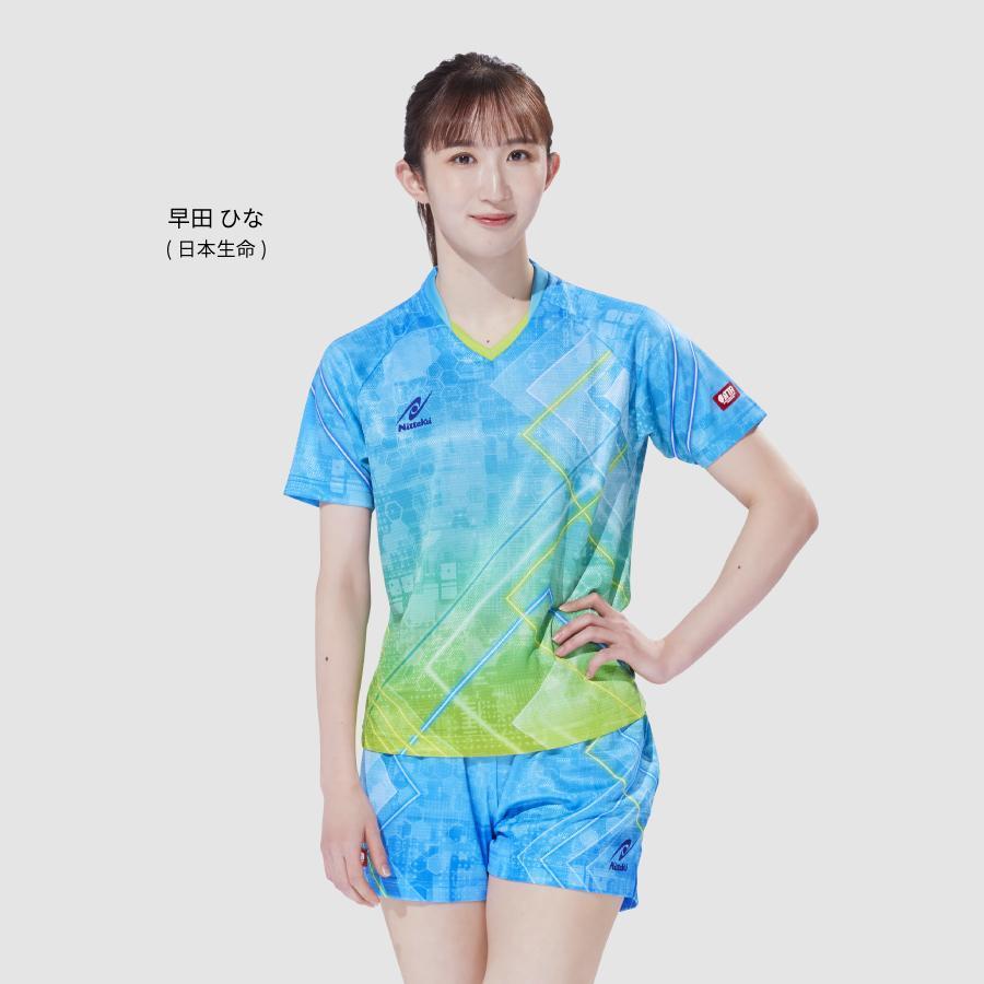 品番:NW-2212分類:男女兼用カラー:ネイビー(02)、ライトブルー(03)、パープル(50)素材・材質:「ブライトドット」ポリエステル100%サイズ:パープル:J130・J150・3S・SS・S・M・L・O・XO・2XOネイビー・ライトブルー:SS・S・M・L・O・XO・2XO特徴:男女兼用、ジュニア、吸汗速乾、伸縮公認:JTTA公認(公式試合に着用することができます。)原産国:中国