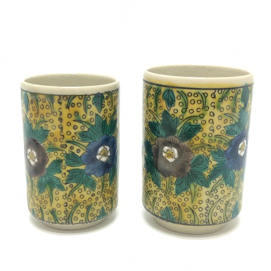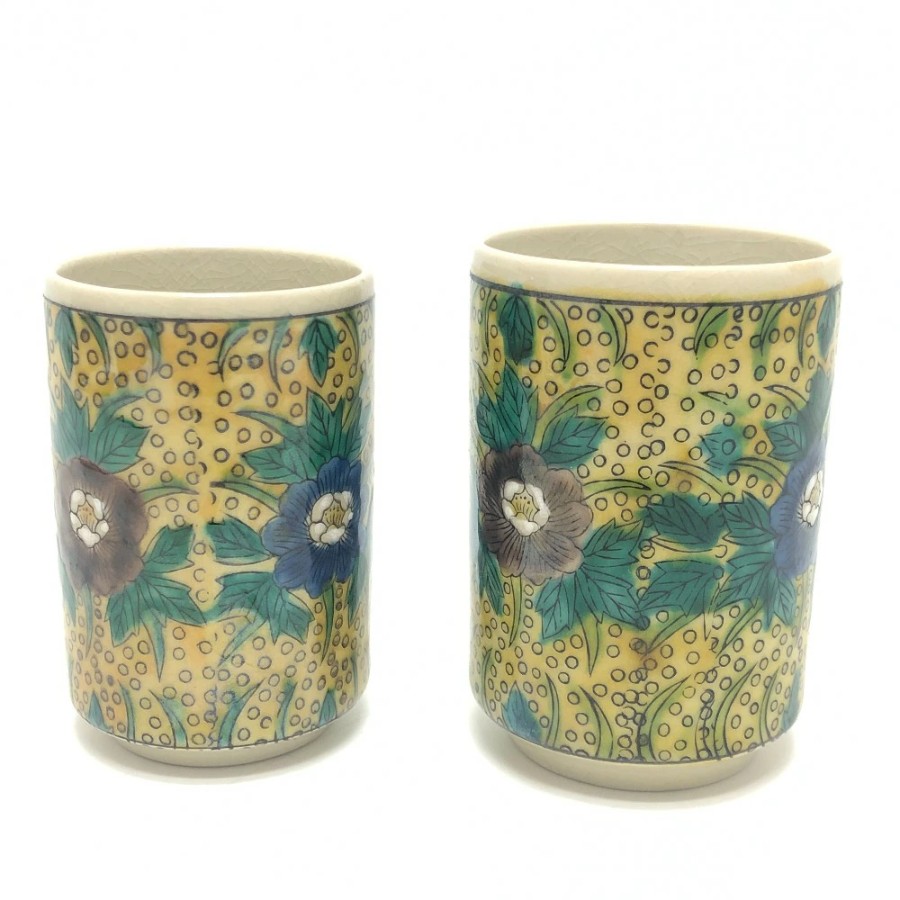 | 商品説明 | 石川県をを代表する伝統工芸 九谷焼の夫婦湯呑です。九谷焼の画風のひとつである「吉田屋風」の色彩で仕上げられています。鮮やかな色彩がお茶の時間をより贅沢に彩ります。 |