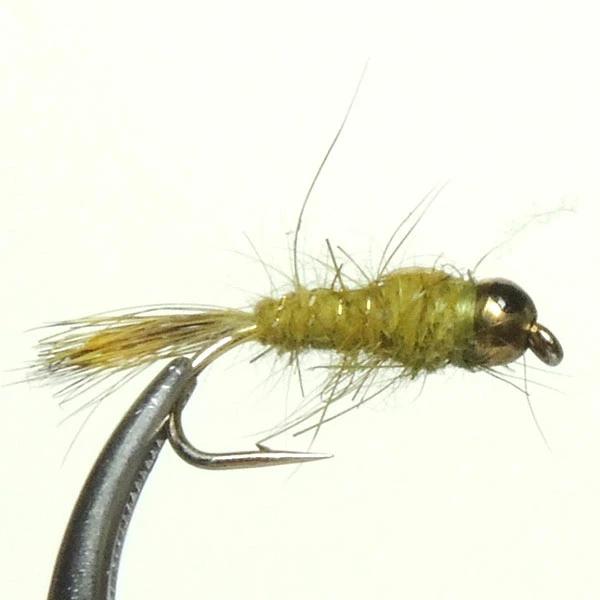 パターン名:タングステン ブラックアイ ヘヤーズイヤーニンフ オリーブ フラッシュバック