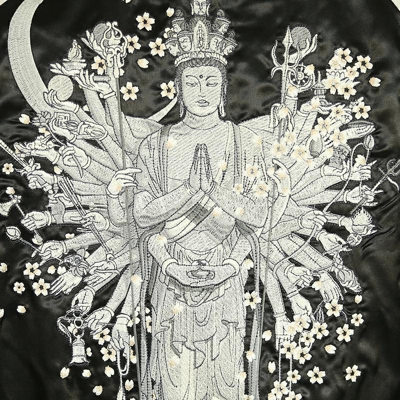 千手観音像 柄 刺繍 和柄 スカジャン です。