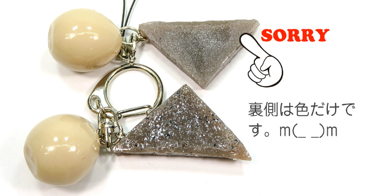 おでんA(玉子、こんにゃく)サイズ : 3cm×4cm×2cm重さ : 14g(キーホルダー:+5g、ストラップ:+1g)