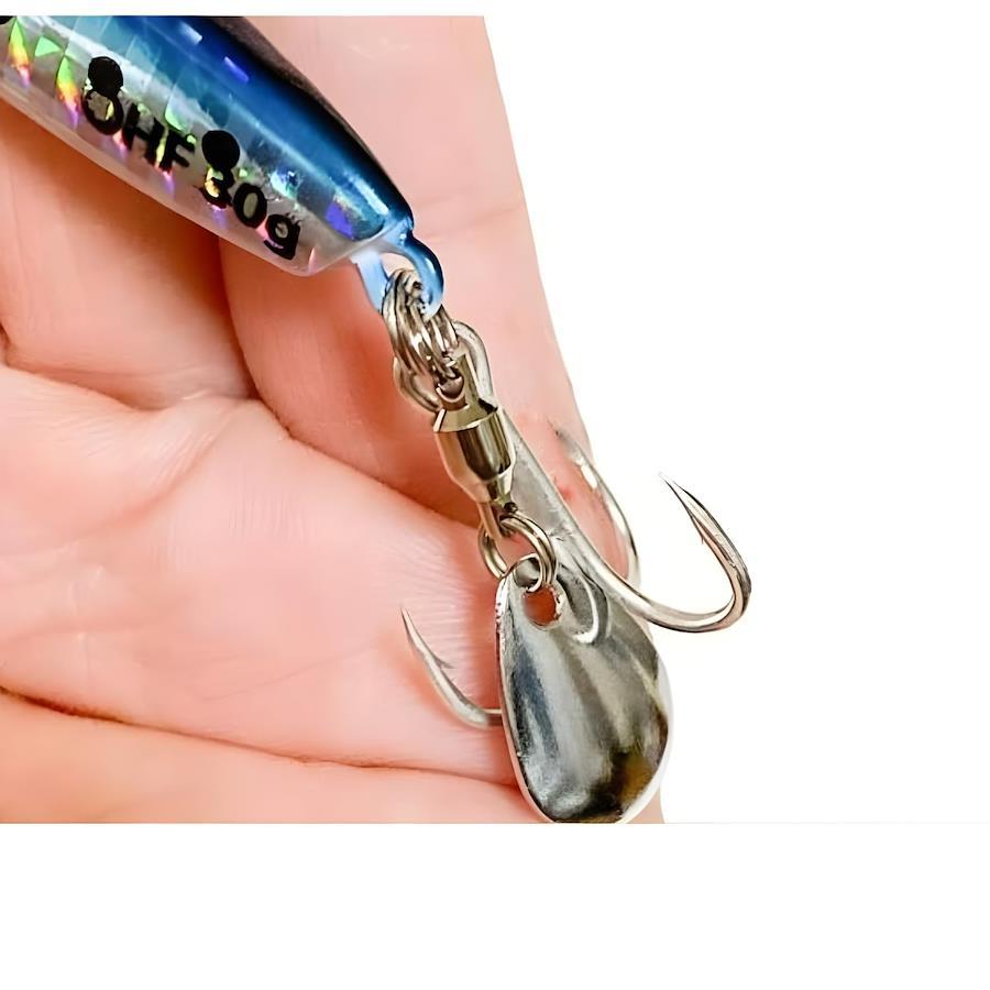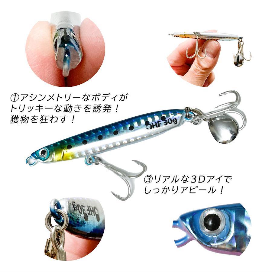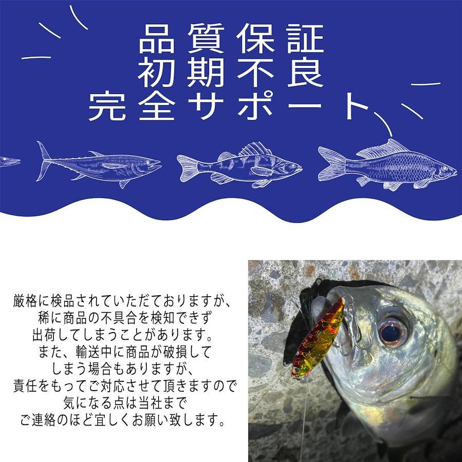 国産ルアーは高すぎる! 安価なルアーですが、 動きは一流です。高価な国産ルアーをロストしないためにセットでお買い得コスパ最適大量セット。 根がかりを気にせずボトムの大物を食らわせる。 サーフからど遠投してくださいリア重心でめっちゃ飛ぶ。 あとはボトムをとってまくだけ。タダ巻きしていただければミノーライクにスイングいたします。 リアにセットされているブレードがバイトの確立を誘発いたします。 サーフメインでヒラメやマゴチなどフラットフィッシングに最適です。 さらに回遊している青物にも標準装備の2個のトレブルフックが対応いたします。 これからのサーフ釣りではリアクション重心、ブレード付き、ミノーライク設計の ルアーが必須になります。 基本的にはボトムはからトップまでタダ巻OK、キラキラとフラッシング効果でヒラメを狂わす! リアウエイト設計で圧倒的な飛距離を実現 30gで100mは軽く飛ぶ設計ですので女性にもおすすめです。