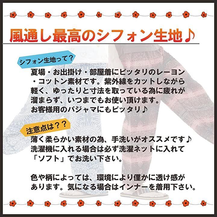 エスニックファッション・アジアンファッションというと、「柄が奇抜・デザインが派手・ボタンやチャックが多くて着方が分からない」など、様々な障壁がある様に思えますが、こちらのサルエルパンツは初心者の方にもラクラク着て頂ける「シンプル・いつでも気楽に・色を揃えて楽しめる」をコンセプトにしたサルエルパンツです。