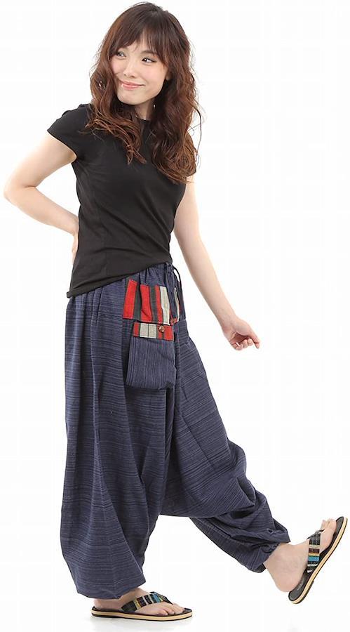 エスニックファッション・アジアンファッションというと、「柄が奇抜・デザインが派手・ボタンやチャックが多くて着方が分からない」など、様々な障壁がある様に思えますが、こちらのサルエルパンツは初心者の方にもラクラク着て頂ける「シンプル・いつでも気楽に・色を揃えて楽しめる」をコンセプトにしたサルエルパンツです。