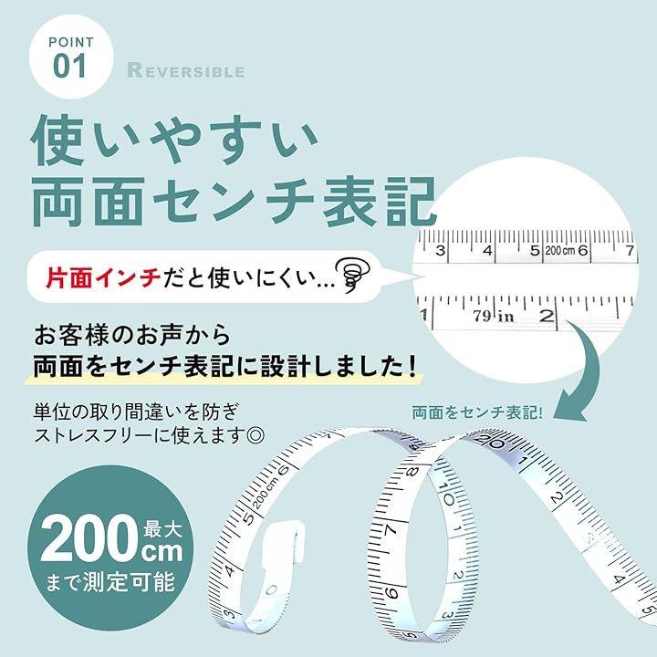 片面がインチ表示になっていると測定中に混同しやすいですが、両面がセンチ表示なので、混同しづらく快適にお使い頂けます。