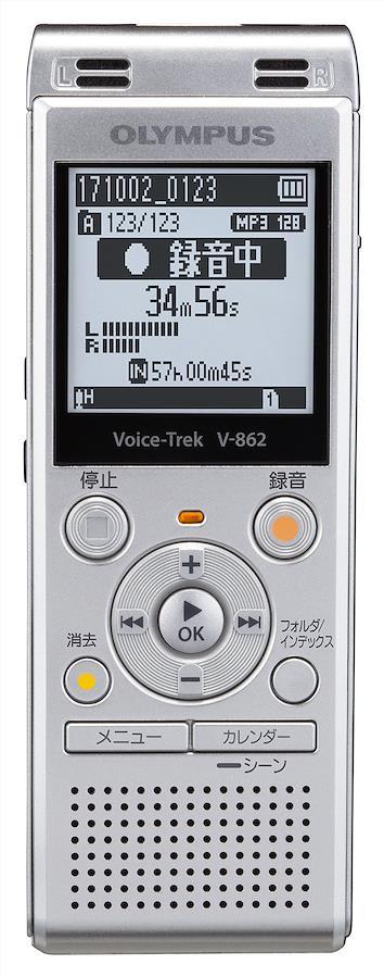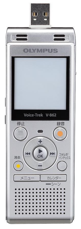 オリンパス「Voice-Trek V-862」は、臨場感溢れるクリアな録音と、確かな操作性はもちろん、さらに学習に便利な機能が充実しています。広さのある教室などで、音源の遠/近を問わず、最適な録音レベル調整を行い、聞きやすい音量で記録する「ボイスチェイサー」を搭載。また、「オートインデックス」「カレンダー検索」など、復習に便利な機能、「シャドーイング」「ミュージックフォルダ」など、語学学習に便利な機能が充実。内蔵メモリは4GB搭載で、最大約1040時間の録音が可能。microSDカードにも対応し