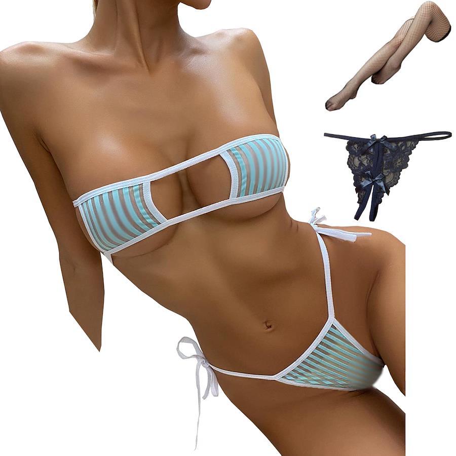 【商品内容】極小ビキニ上下+ニーハイストッキング+穴あきTバックショーツ=計4点セット 【サイズ】女性用フリーサイズ(S~6L相当)バスト:~130cm、ヒップ:~160cm 【カラー】スカイブルー×ホワイト(ストッキングとショーツのカラー・デザインはおまかせになります) 【特徴】超セクシーなマイクロビキニ下着。眼帯ブラとTバックショーツのセット。ストライプ柄の生地は極薄で透け感の強い仕様です。ゴム紐を使用し、大きいサイズ・男性の着用にも対応します。ブラ紐はオフショルダーと首掛けの2通りが楽しめます。 ※他にもルームドレス・ベビードール・レオタード・マイクロビキニ・ムタンガなど、豊富なバリエーションをご用意しております 【使用上の注意】 洗濯はぬるま湯にて軽く手洗い・室内干しを推奨。色物は色落ちしますので白物と一緒の選択は避けてください。衣類に接着されているアクセサリーなどは洗濯により外れることがあります。海外製品につき、糸のほつれや縫製の甘い部分などはご了承願います。生産ロットにより予告なく仕様が変更されることがあり、写真と異なる場合は現物を優先とさせていただきます。下着類はデリケートな素材が多いため、着脱時に爪やアクセサリーなどで引っ掻いたりしないようご注意ください。 こんな用途におすすめ:ハロウィン・クリスマス・バレンタインデー・忘年会・新年会・コスプレパーティ等の余興、イベント衣装やインナーとして。インスタ・SNS・グラビア・記念写真など撮影用衣装として。結婚記念日・結婚祝い・婚約祝い・出産祝いなど記念日のプレゼントやジョークグッズとして。男性が着用可能なコスプレもございます。女装用・セックスレス・マンネリ化の解消にも。アニメキャラ・癒し・萌え・熟女・学生・SM系~過激ベビードール・極小マイクロビキニ・ボディストッキング・スクール水着など、人気セクシーランジェリーから注目のデザインをセレクト。 穴あき・胸開き・透ける素材・ハイレグ・Tバック・紐パン・レースなど、異なるバリエーションからお好みのセット・単品が選べます。梱包サイズ?:?22.5x17.6x2.4cm;50gでの取り扱い開始日?:?2021/12/10メーカー?:?OLYOLYASIN?:?B09NCYVR5X商品モデル番号?:?bikini部門?:?女性用売れ筋ランキング:ドラッグストア-123,139位(ドラッグストアの売れ筋ランキングを見る)アダルト用コスチューム-1,484位カスタマーレビュー:4.35つ星のうち4.33個の評価vardpAcrHasRegisteredArcLinkClickAction;P.when('A','ready').execute(function(A){if(dpAcrHasRegisteredArcLinkClickAction!==true){dpAcrHasRegisteredArcLinkClickAction=true;A.declarative('acrLink-click-metrics','click',{"allowLinkDefault":true},function(event){if(window.ue){ue.count("acrLinkClickCount",(ue.count("acrLinkClickCount")||0)+1);}});}});P.when('A','cf').execute(function(A){A.declarative('acrStarsLink-click-metrics','click',{"allowLinkDefault":true},function(event){if(window.ue){ue.count("acrStarsLinkWithPopoverClickCount",(ue.count("acrStarsLinkWithPopoverClickCount")||0)+1);}});});(#lf)(#lf)(#lf)商品購入前に、ストア紹介ページをご確認ください。