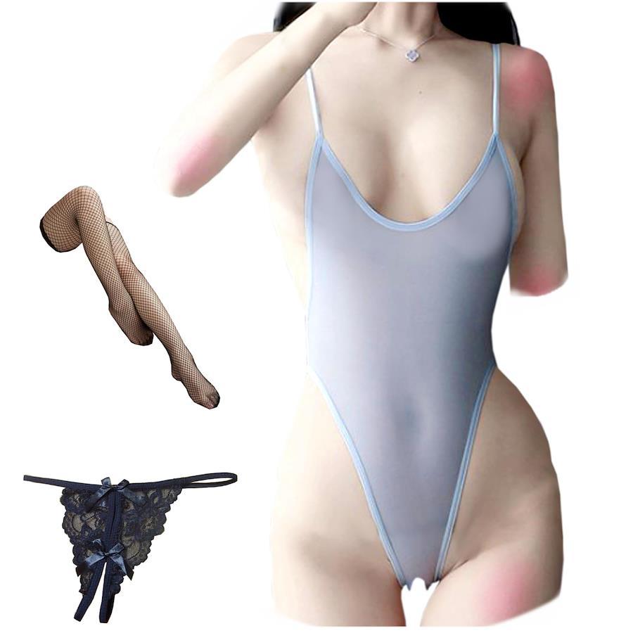 【商品内容】ハイレグレオタード+ニーハイストッキング+穴あきTバックショーツ=計3点セット 【サイズ】女性用フリーサイズ(S~XL相当)ヒップ:~100cm、丈:55~75cm、身長:~175cm 【特徴】アンダー部分が過激な穴あき仕様になった超ハイレグレオタード。透け感が強い薄手のストレッチ素材。大きなサイズ・男性にも対応できます。 ※他にもルームドレス・ベビードール・レオタード・マイクロビキニなど、豊富なバリエーションをご用意しております 【使用上の注意】 洗濯はぬるま湯にて軽く手洗い・室内干しを推奨。色物は色落ちしますので白物と一緒の選択は避けてください。衣類に接着されているアクセサリーなどは洗濯により外れることがあります。海外製品につき、糸のほつれや縫製の甘い部分などはご了承願います。生産ロットにより予告なく仕様が変更されることがあり、写真と異なる場合は現物を優先とさせていただきます。下着類はデリケートな素材が多いため、着脱時に爪やアクセサリーなどで引っ掻いたりしないようご注意ください。 こんな用途におすすめ:ハロウィン・クリスマス・バレンタインデー・忘年会・新年会・コスプレパーティ等の余興、イベント衣装やインナーとして。インスタ・SNS・グラビア・記念写真など撮影用衣装として。結婚記念日・結婚祝い・婚約祝い・出産祝いなど記念日のプレゼントやジョークグッズとして。男性が着用可能なコスプレもございます。女装用・セックスレス・マンネリ化の解消にも。アニメキャラ・癒し・萌え・熟女・学生・SM系~過激ベビードール・極小マイクロビキニ・ボディストッキング・スクール水着など、人気セクシーランジェリーから注目のデザインをセレクト。 穴あき・胸開き・透ける素材・ハイレグ・Tバック・紐パン・レースなど、異なるバリエーションからお好みのセット・単品が選べます。登録情報取り扱い案内 洗濯機洗い【商品内容】ハイレグレオタード+ニーハイストッキング+穴あきTバックショーツ=計3点セット