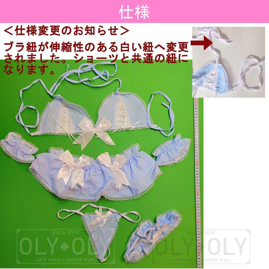 【商品内容】ビキニコスプレセット(ブラ・ショーツ・スカート・アームバンド*2・ガーターバンド兼チョーカー)+ニーハイストッキング+穴あきTバックショーツ=計8点セット 【サイズ】女性用フリーサイズ(S~L相当)腕周り:~30cm、バスト:~130cm、ウェスト:~120cm、ヒップ:~100cm(Tショーツ)、腿周り:70cm 【カラー】ホワイト×ブルー(ストッキングとショーツのカラー・デザインはおまかせになります) 【特徴】フリルとチェック柄が可愛い、ちょっと過激なメイド風コスプレビキニセットです。やや硬めの生地に伸びはありませんが、紐結びとゴム使いで柔軟なサイズ調整が可能。Tショーツ以外は大きなサイズに対応できます。 <仕様変更のお知らせ>ブラジャーの紐が白色へ変更されました。ショーツ紐と共通で伸縮性のある紐になります。しばらくの間は新・旧タイプいずれかのお届けとなっております。 ※他にもルームドレス・ベビードール・レオタード・マイクロビキニ・ムタンガなど、豊富なバリエーションをご用意しております 【使用上の注意】 洗濯はぬるま湯にて軽く手洗い・室内干しを推奨。色物は色落ちしますので白物と一緒の選択は避けてください。衣類に接着されているアクセサリーなどは洗濯により外れることがあります。海外製品につき、糸のほつれや縫製の甘い部分などはご了承願います。生産ロットにより予告なく仕様が変更されることがあり、写真と異なる場合は現物を優先とさせていただきます。下着類はデリケートな素材が多いため、着脱時に爪やアクセサリーなどで引っ掻いたりしないようご注意ください。 こんな用途におすすめ:ハロウィン・クリスマス・バレンタインデー・忘年会・新年会・コスプレパーティ等の余興、イベント衣装やインナーとして。インスタ・SNS・グラビア・記念写真など撮影用衣装として。結婚記念日・結婚祝い・婚約祝い・出産祝いなど記念日のプレゼントやジョークグッズとして。男性が着用可能なコスプレもございます。女装用にも。アニメキャラ・癒し・萌え・熟女・学生・SM系~過激ベビードール・極小マイクロビキニ・ボディストッキング・スクール水着など、人気セクシーランジェリーから注目のデザインをセレクト。 穴あき・胸開き・透ける素材・ハイレグ・Tバック・紐パン・レースなど、異なるバリエーションからお好みのセット・単品が選べます。梱包サイズ?:?28.8x27.1x5cm;110gでの取り扱い開始日?:?2021/8/9メーカー?:?OLYOLYASIN?:?B09C7TKD2H売れ筋ランキング:ドラッグストア-80,454位(ドラッグストアの売れ筋ランキングを見る)アダルト用コスチューム-684位カスタマーレビュー:3.25つ星のうち3.217個の評価vardpAcrHasRegisteredArcLinkClickAction;P.when('A','ready').execute(function(A){if(dpAcrHasRegisteredArcLinkClickAction!==true){dpAcrHasRegisteredArcLinkClickAction=true;A.declarative('acrLink-click-metrics','click',{"allowLinkDefault":true},function(event){if(window.ue){ue.count("acrLinkClickCount",(ue.count("acrLinkClickCount")||0)+1);}});}});P.when('A','cf').execute(function(A){A.declarative('acrStarsLink-click-metrics','click',{"allowLinkDefault":true},function(event){if(window.ue){ue.count("acrStarsLinkWithPopoverClickCount",(ue.count("acrStarsLinkWithPopoverClickCount")||0)+1);}});});(#lf)(#lf)(#lf)商品購入前に、ストア紹介ページをご確認ください。