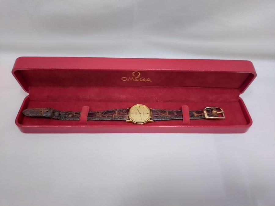 - ブランド: OMEGA- 色: ゴールド- バンド素材: レザー- ダイヤル形状: ラウンド- 手巻き-動作未確認のためジャンク品扱いでお願いします-ベルト部分に劣化ひび割れあり-箱あり