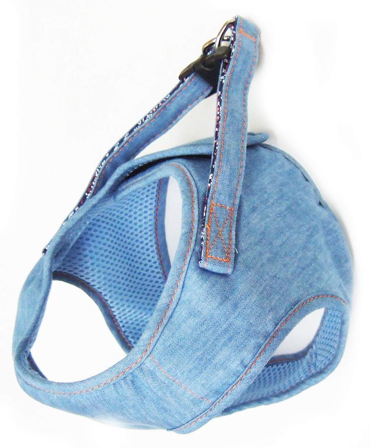 表面はデニム生地で、内側にメッシュ加工したナイロン生地を使用し、通気性の良いソフトなハーネスです。