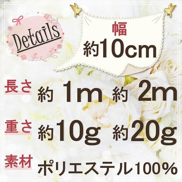 「使用例」ドレス・スカート・ブラウスの襟元・袖口・裾部分、子供服やベビードレスのアクセント、ペット衣装のアクセント、ヘアバンド、リボン、帽子やバッグのアクセント、カーテン・クッション・テーブルクロス・ベッドリネンなどの縁取り、スクラップブッキング、ギフトラッピング、ぬいぐるみ・ドール衣装、ハンカチ・スカーフのアクセント、エプロン・キッチンタオルの縁取りなど・・