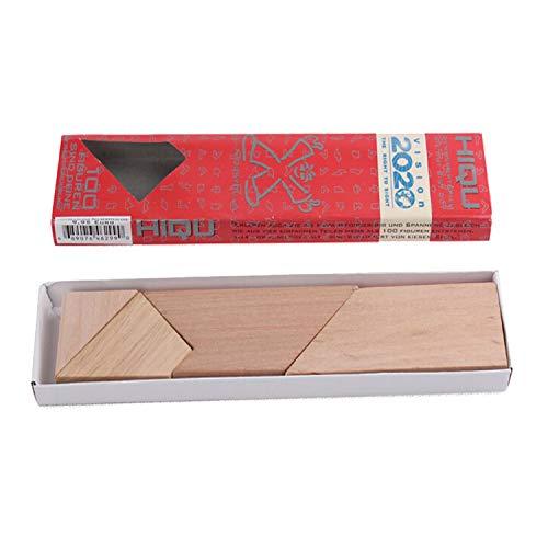いろいろ形をした4つのピースを組み合わせる木製パズル。