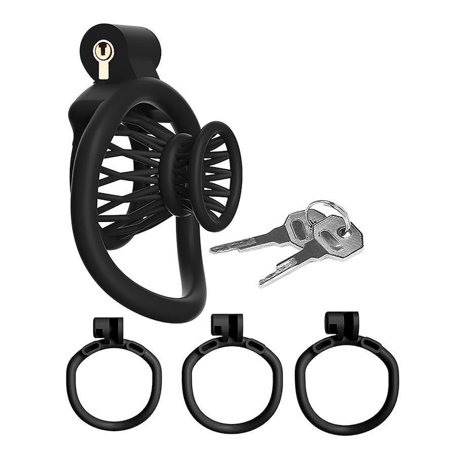 Orirya 貞操帯 男の娘用 貞操体 男性 軽量ABS樹脂製 鍵付き 四つの貞操リング付き 排泄可能 コスプレ用 アダルトグッズ 男性用 大人のおもちゃ 男 smグッズ 小型 防錆 隠れ貞操具 smプレイ 貞操ロック ペニス拘束 コックケージ 装着型 ブラック 魚籠型デザイン