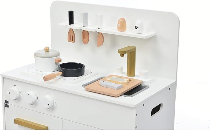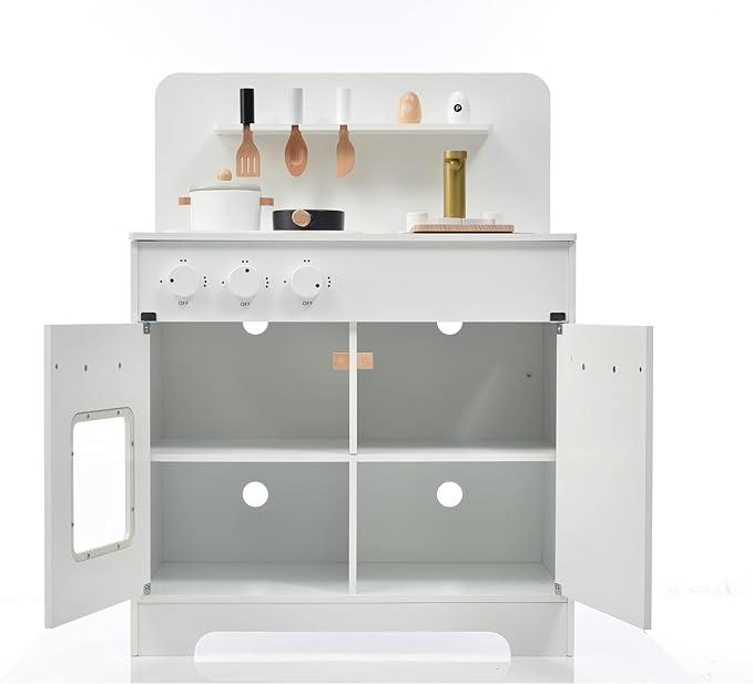 ■商品名おままごと キッチン 木製 調理器具付き ままごとセット 誕生日 台所 知育玩具 子供用 子供 収納 まねっこ コンロミニキッチン おもちゃキッチン キッズ ベビー プレゼント ギフトボックス付き(ホワイト)