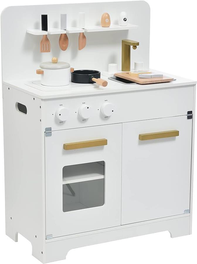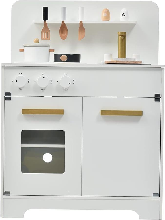 ■商品説明◆01二つのコンロ 二つのコンロで煮るも焼くも同時にできます~ ◆02蛇口&シンク くるくる回して遊べる蛇口とぴったりサイズのシンクがセットになります。食材を洗って、遊びの中からきれいにする意識を生みます。 ◆03掛けフック 上部に三つのフックがつけられていて、フライ返しやおたまなどの調理器具を掛けて収納することができます。 ◆04コンロのつまみ コンロのつまみはすべて回すとカチカチと音を鳴らしながら360度回せます。 ◆05飾り棚 本体上部の飾り棚で、お好みの雑貨やおもちゃの調味料を置くことができます。 ◆06オーブンみたいな小窓付扉 小窓がついた開き扉の中は2段に分かれており、オーブンのように使ったりすることができます。 ◆07収納スペース 本体下部には左右収納スペースがあり、おままごと器具やおもちゃンなどをいっぱいしまえます。遊びながら整理整頓の習慣を身に着けられますよ。◆08磁石設計の扉 お子様の安全を第一位に考えて、手を挟みにくい、ゆっくりと閉まる磁石設計の扉を採用します!◆09細かいところまで配慮 小さなお子様が使うものだから、不意にけがをしないよう細かいところまで配慮しています。角は丸く加工することで安全性を高めました。◆10細かいところまで配慮 EN71などの「玩具の安全性(safety of toys)」テスト結果はPASS!素材から塗料まで安全でお子様に優しくて頼もしい製品です。表示件数を増やす
