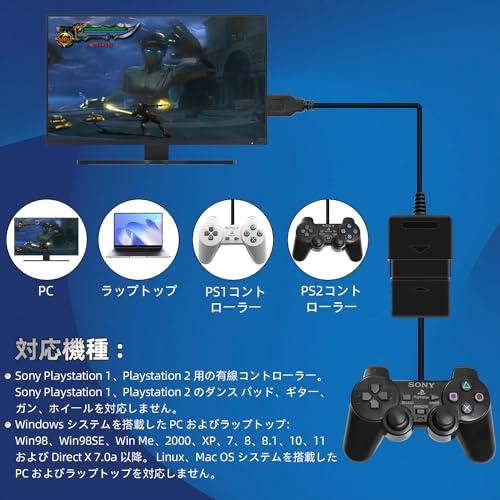Works with Sony Playstation 1 and Playstation 2 controllers Supported games support dual shock real vibration function in digital/analog mode Press the "Analog" button to switch between digital/analog mode Easy and convenient to use. Just hot plug your PC/Laptop USB socket and install the driver, it will work perfectly. Note: You need to install the driver before using the adapter Compatible with Sony Playstation 1, Playstation 2 Wired Controller Not compatible with Sony Playstation 1, Playstation 2 dance pads, guitars, guns and wheels. PC and laptop with Windows system: Win98, Win98SE, Win Me, 2000, XP, 7, 8, 8.1, 10, 11 and Direct X 7.0a or later Not compatible with PC and laptop with Linux and Mac OS system
